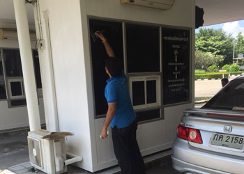 จากเจ้าหน้าที่ของสำนักงานขนส่ง จังหวัดนนทบุรี ทางสำนักงานขนส่งของเรากำลังจะติดฟิล์มกรองแสงสำนักงานรายย่อยของเราที่รับต่อภาษีรถยนต์ ให้กับประชาชน หรือที่เรียกกันว่าช่องทางด่วน