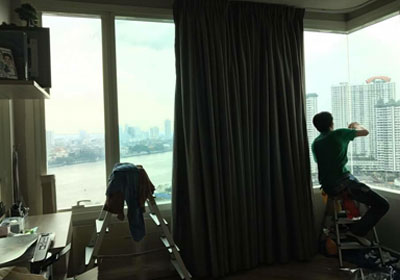 เพราะเวลาที่ผมอยากจะดูวิวแม่น้ำเจ้าพระยาในตอนกลางวันผมต้องเปิดผ้าม่านแต่แสงแดดก็จะส่องเข้ามามากจนผม ร้อนและแสบตามากครับผมจึงคิดว่าจะทำอย่างไรถ้าผมจะเปิดผ้าม่านมองดูบรรยากาศภายนอกได้โดยที่แสงแดดส่อง เข้ามาแล้วไม่รู้สึกว่าร้อนมาก ผมจึงเข้าไปหาข้อมูลร้านรับติดฟิล์มกรองแสงคอนโดราคาถูกจากใน Internet และผมก็สนใจร้านของช่างแขกครับ ราคาไม่แพงมาก และก็มีลูกค้าที่ใช้บริการติดฟิล์มกรองแสงคอนโดเยอะครับ ซึ่งผมดูจากผลงานและก็รีวิวตอบรับจากลูกค้าถือว่าใช้ได้