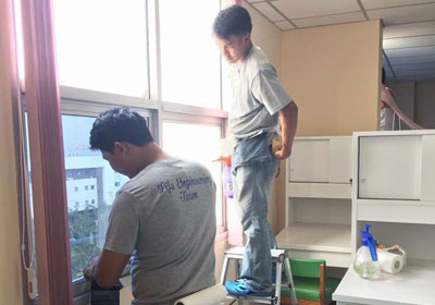 ฉันเป็นเจ้าหน้าที่ของโรงเรียนพยาบาลรามาธิบดีคะ ผลงานการติดฟิล์มกรองแสงอาคารของช่างแขก