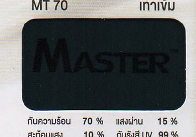 แล้วก็ไม่ผิดหวังเลยครับที่ผมเลือกร้านของช่างแขกมาติดฟิล์มกรองแสงที่สำนักงานของผม เพราะช่างแขกแนะนำได้ดีมากๆครับ ทั้งยี่ห้อของฟิล์ม รุ่นฟิล์ม ให้ข้อมูลละเอียดเลยครับ ง่ายต่อการตัดสินใจเลือกยี่ห้อฟิล์ม รุ่นฟิล์มเลยครับ และครั้งนี้ช่างแขกก็แนะนำว่าควรจะติดฟิล์มกรองแสงสำนักงานยี่ห้อ Master รุ่นฟิล์ม MT70 ดำ60% ซึ่งผมแจ้งช่างแขกไปเองครับว่าผมต้องการฟิล์มที่กันความร้อนและลดความร้อนจากแสงแดดได้เยอะที่สุด ไม่จำเป็นต้องเป็นฟิล์มที่มียี่ห้อ ขอแค่ราคาถูก และกันความร้อนได้เยอะที่สุดครับ ซึ่งช่างแขกแนะนำว่าควรจะติดฟิล์มกรองแสงสำนักงานยี่ห้อ Master รุ่นฟิล์ม MT70 เป็นฟิล์มคุณภาพพอใช้ได้ ราคาถูก