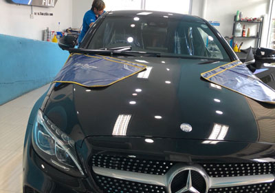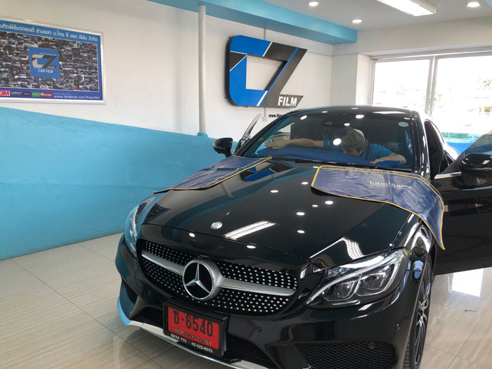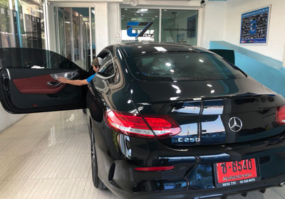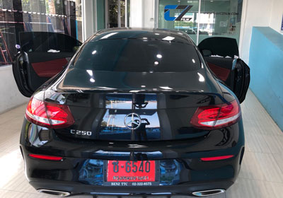 ติดฟิล์มกรองแสงรถยนต์หรู BENZ C250 ติดฟิล์มยี่ห้อ Hikool UVCARE400 Ceramic