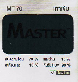 ได้ง่ายขึ้นว่าผมควรจะติดฟิล์มกรองแสงรถหัวลาก ที่ อ.บางใหญ่ จ.นนทบุรี ของผมด้วยฟิล์มกรองแสงยี่ห้ออะไร และรุ่นฟิล์มอะไรครับ และฟิล์มกรองแสงติดรถหัวลากของผมที่ผมเลือกคือ ยี่ห้อ Master รุ่นฟิล์ม MT70 ครับความเข้ม 60%