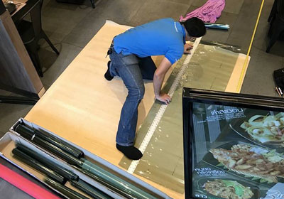 ติดฟิล์มร้านอาหาร ฟิล์มยี่ห้อ Hi-kool R10 ฟิล์มใสราคาถูกยอดนิยม เหมาะสำหรับติดร้านค้าครับ
