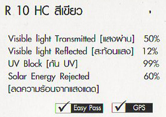 ค่าลดความร้อน Hi-Kool รุ่นฟิล์ม R10