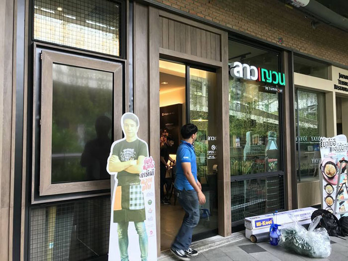 ส่วนคนที่อยู่ภายในร้านก็มองออกมาเห็นภายนอกร้านได้ชัดเจน เนื้อฟิล์มจะเป็นสีเขียวใสให้บรรยากาศอีกแบบนึงเวลาที่มอง ดิฉันฟังแล้วเออตรงกับคอนเซ็ปต์ของร้านเลยคะ เน้นความเป็นธรรมชาติ อาหารหลักของเราคืออาหารอีสาน สีเขียวเป็นสีของธรรมชาติเวลามองแล้วสบายตาคะ