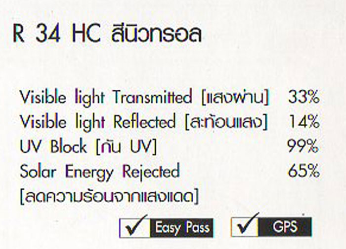 หลังจากได้ศึกษาข้อมูลแล้วผมก็ได้โทรไปหาช่างแขก ซึ่งผมได้เล่ารายละเอียดคร่าวๆ เกี่ยวกับสำนักงานของผมให้ฟัง และช่างแขกก็ได้แนะนำว่าควรจะติดฟิล์มกรองแสงอาคารยี่ห้อ Hi-Kool รุ่น R 34 HC ฟิล์มรุ่นนี้จะมีคุณสมบัติในการลดความร้อน โดยสามารถป้องกันความร้อนได้สูงถึง 65% ป้องกันรังสี UV ได้ 99% ฟิล์มค่อนข้างสว่าง แต่กันความร้อนได้สูง