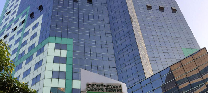 สำนักงานของผมอยู่ในอาคารกรีนทาวเวอร์ ซึ่งโครงสร้างของอาคารส่วนใหญ่จะเป็นกระจกทุกด้านครับ