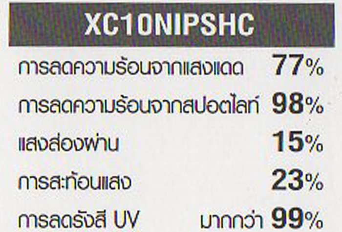 เนื่องจากติดเหล็กดัด และทางผมก็โอเคกับที่ช่างแขกแนะนำ และฟิล์มที่ช่างแขกแนะนำคือ ยี่ห้อ Xtra-Cole รุ่น XC10NI สีนิคเคิลเข้มเคลือบเงา ซึ่งคุณสมบัติของฟิล์มรุ่นนี้จะลดความร้อนจากแสงแดดประมาณ 77% และป้องกันรังสียูวีได้สูงถึง 99% หลังจากที่ได้ฟังช่างแขกแนะนำผมก็ตอบตกลงเลือกฟิล์มยี่ห้อ Xtra-Cole รุ่น XC10NI รุ่นแนะนำ