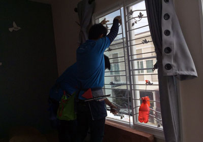 ทางช่างแขกบอกว่าทางบริษัทฯ รับติดฟิล์มกรองแสงทุกประเภทครับ ที่บ้านผมติดเหล็กดัดอยู่ และผมรู้สึกว่าภายในบ้านร้อน เลยสอบถามกับทางช่างแขกไปว่าบ้านติดเหล็กดัดอยู่ จะติดฟิล์มกรองแสงบ้านได้ไหม เนื่องจากผมไม่อยากถอดเหล็กดัด เพราะกลัวถอดออกมาแล้วจะไม่เหมือนเดิม แต่บ้านผมร้อนมากเนื่องจากแสงแดดส่องผ่านตลอดเวลาในช่วงกลางวัน และช่างแขกได้แนะนำว่าสามารถติดฟิล์มกรองแสงบ้านได้โดยไม่ต้องถอดเหล็กดัดก็ได้ แต่เวลาที่ติดออกมาแล้วจะไม่สมบูรณ์ 100%