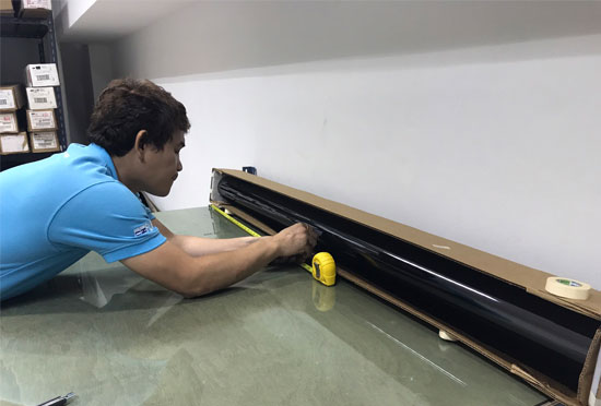 1. ช่างแขกตัดฟิล์มตามขนาดกระจก ซึ่งต้องใช้การคำนวนเพื่อให้เสียเศษฟิล์ม
