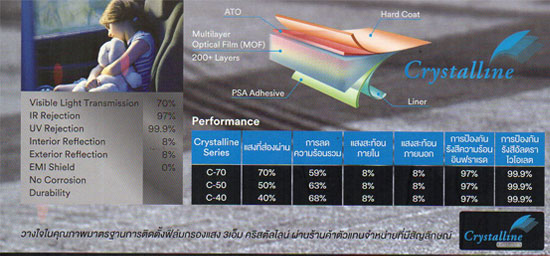 หมายเหตุ : การติดฟิล์มใหม่จะมีคราบน้ำอยู่ซึ่งจะหายไปเองภายใน 7 วัน แต่ถ้านำรถไปตากแดด