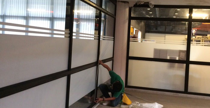 ส่วนใหญ่พื้นสำนักงานจะติดฟิล์มฝ้าอยู่ประมาณ 200 ฟุต