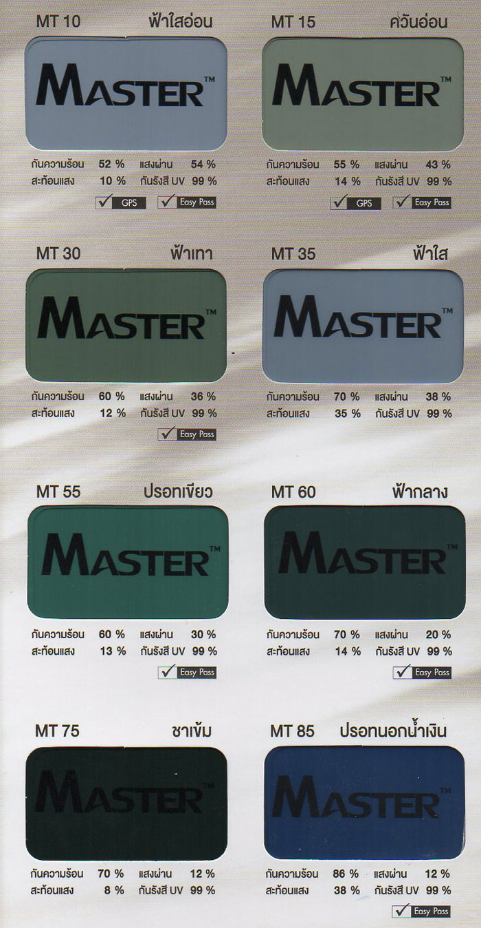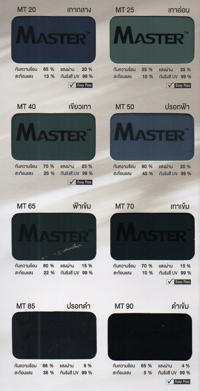 - มีสีให้เลือกมากมาย สามารถเข้ากับรถทุกรุ่น ทำให้รถดูภูมิฐาน พร้อมให้ความเป็นส่วนตัวในเวลาขับขี่ |
